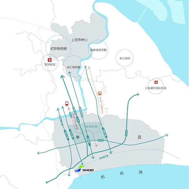 FSCIPは、上海の南、杭州灣の北側(cè)に位置しています。上海ダウンタウンから約55km、浦東國(guó)際空港から50km、虹橋交通ハブから40km、陽山深海港から50km。